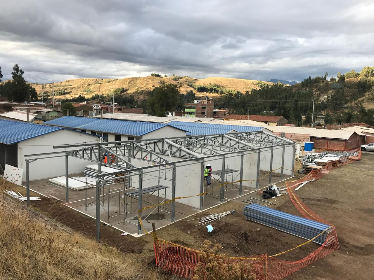 Estructura metálica, paneles PUR, puertas, Ventanas.